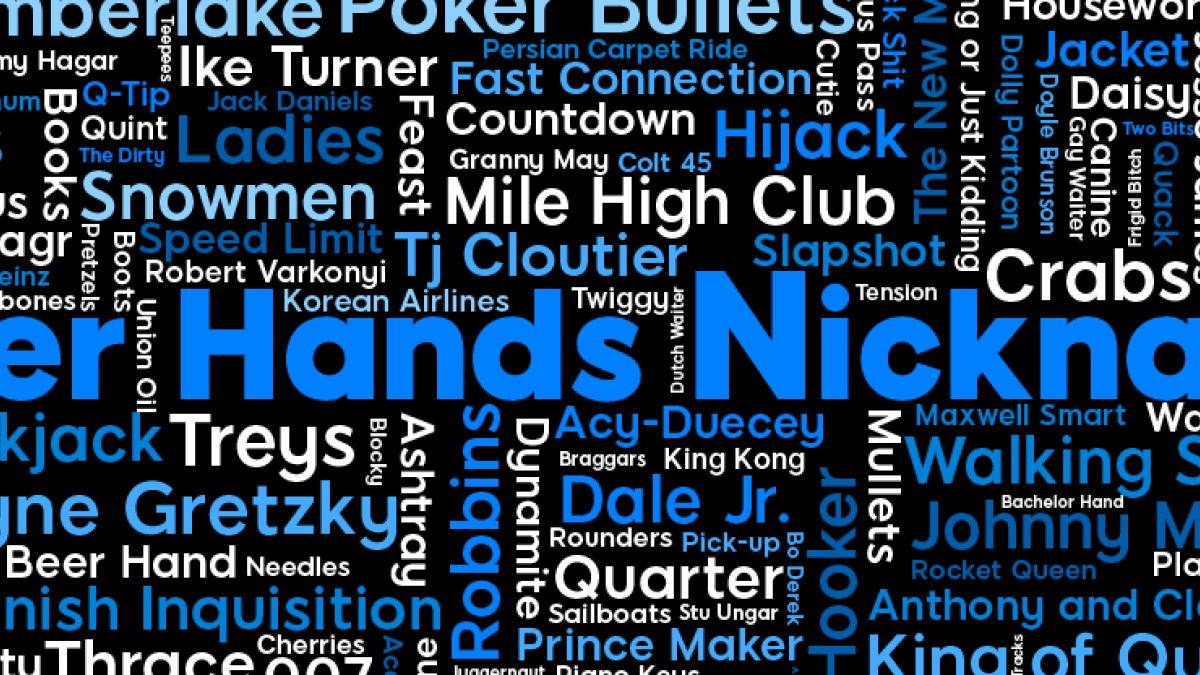 Il poker viene giocato da generazioni e richiede di trascorrere molte ore al tavolo. Nel corso degli anni, i giocatori hanno utilizzato tutta la loro creatività e affibbiato nomignoli strani e simpatici alle mani più tipiche e significative.